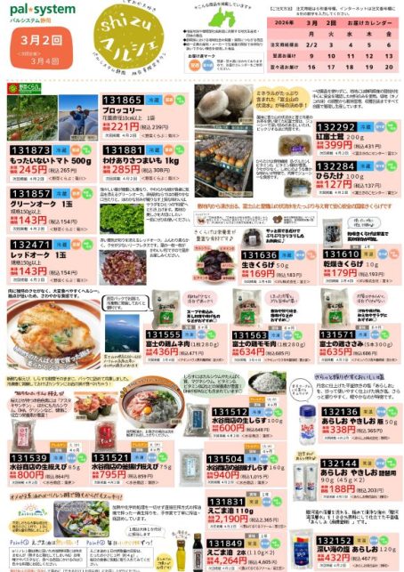 パルシステム静岡組合員のための限定チラシですので、是非ご覧になって、地元の美味しいもの、良い商品を見つけてみて下さい。